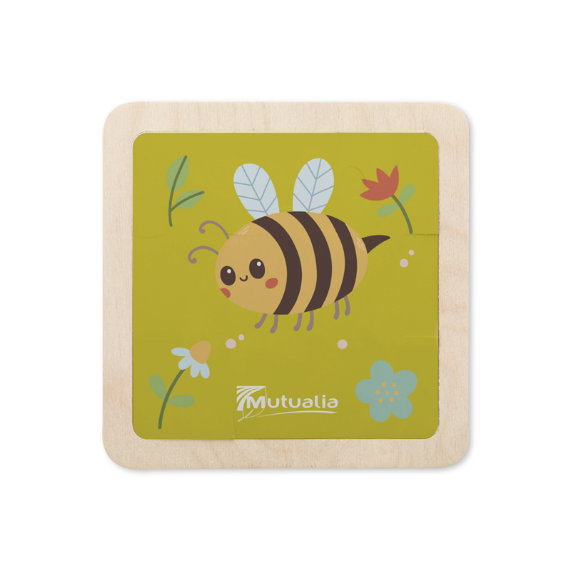 Puzzle en bois et plastique de 9 pcs. Pièces du puzzle en plastique. Support en bois de bouleau laminé. Taille : 120×120×3 mm Fabriqué en Europe